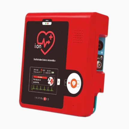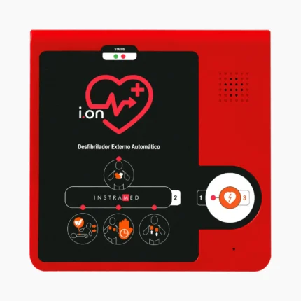 El ION de Instramed es un Desfibrilador Externo Semiautomático (DEA) de nueva generación, diseñado para emergencias cardiacas. Utiliza un protocolo de atención guiado por voz, realiza diagnósticos automáticos, evalúa las variables clínicas y aplica el tratamiento de manera segura con solo presionar un botón. Este dispositivo es compacto, ligero, resistente y extremadamente fácil de usar, ideal para situaciones críticas.